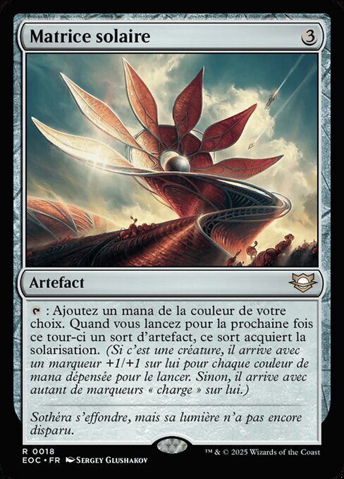 | Rules | : Add one mana of any color. When you next cast an artifact spell this turn, that spell gains sunburst. (If it's a creature, it enters with a +1/+1 counter on it for each color of mana spent to cast it. Otherwise, it enters with that many charge counters on it.) |
