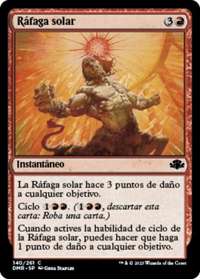 | Rules | Solar Blast deals 3 damage to any target. Cycling (, Discard this card: Draw a card.) When you cycle Solar Blast, you may have it deal 1 damage to any target. |