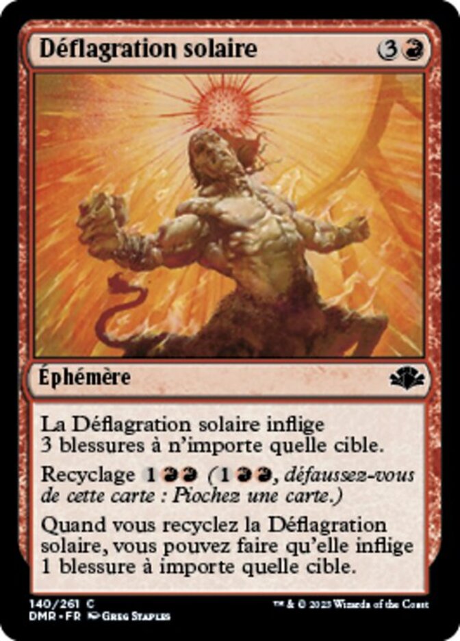 | Rules | Solar Blast deals 3 damage to any target. Cycling (, Discard this card: Draw a card.) When you cycle Solar Blast, you may have it deal 1 damage to any target. |