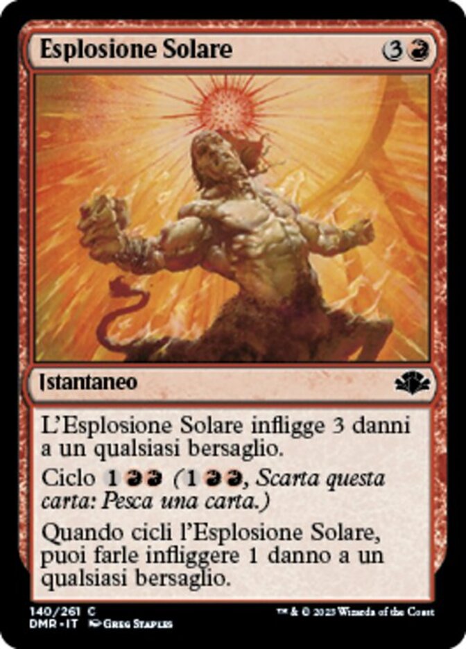 | Rules | Solar Blast deals 3 damage to any target. Cycling (, Discard this card: Draw a card.) When you cycle Solar Blast, you may have it deal 1 damage to any target. |