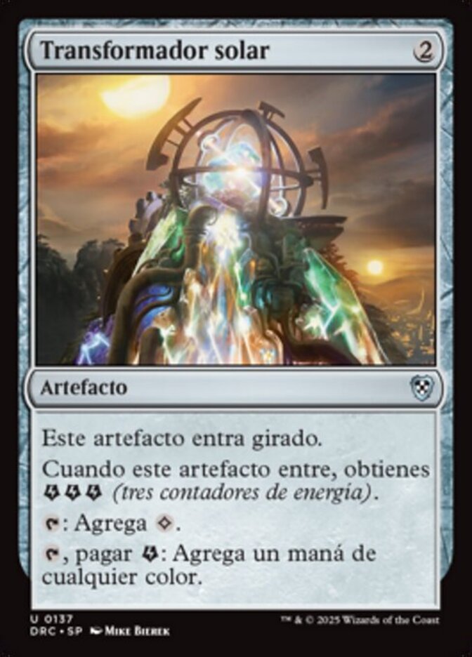 | Rules | Solar Transformer enters the battlefield tapped. When Solar Transformer enters the battlefield, you get (three energy counters). : Add . , Pay : Add one mana of any color. |