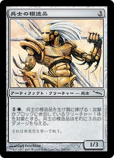 | Rules | , Sacrifice Soldier Replica: It deals 3 damage to target attacking or blocking creature. |