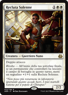 | Rules | Double strike Revolt — At the beginning of your end step, if a permanent you controlled left the battlefield this turn, put a +1/+1 counter on Solemn Recruit. |