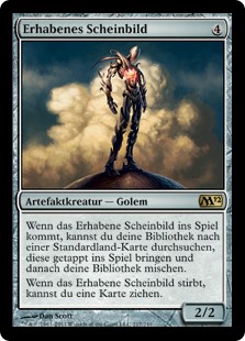 | Rules | When Solemn Simulacrum enters the battlefield, you may search your library for a basic land card, put that card onto the battlefield tapped, then shuffle. When Solemn Simulacrum dies, you may draw a card. |