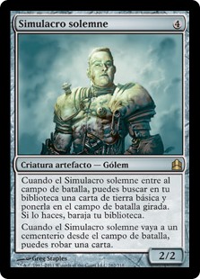 | Rules | When Solemn Simulacrum enters the battlefield, you may search your library for a basic land card, put that card onto the battlefield tapped, then shuffle. When Solemn Simulacrum dies, you may draw a card. |