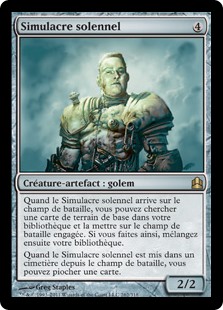 | Rules | When Solemn Simulacrum enters the battlefield, you may search your library for a basic land card, put that card onto the battlefield tapped, then shuffle. When Solemn Simulacrum dies, you may draw a card. |