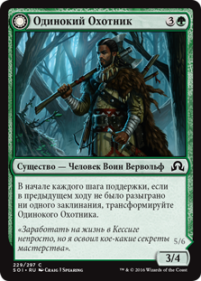 | Rules | At the beginning of each upkeep, if no spells were cast last turn, transform Solitary Hunter. // At the beginning of each upkeep, if a player cast two or more spells last turn, transform One of the Pack. |