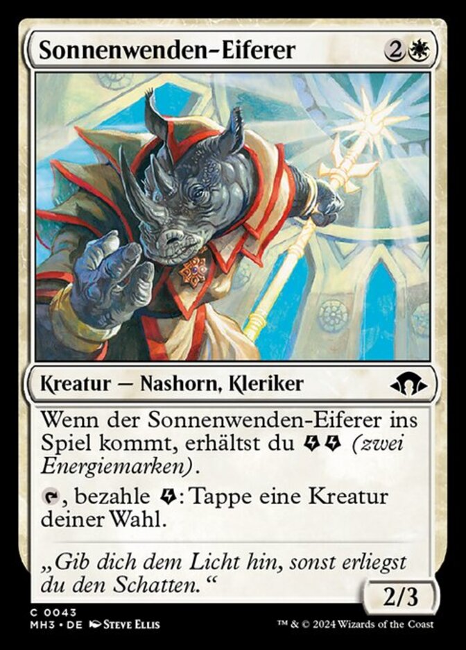 | Rules | When Solstice Zealot enters the battlefield, you get (two energy counters). , Pay : Tap target creature. |