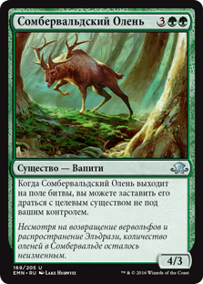 | Flavor | Despite the reemergence of werewolves and the proliferation of Eldrazi, elk numbers in the Somberwald have remained steady. |
