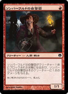 | Rules | Whenever Somberwald Vigilante becomes blocked by a creature, Somberwald Vigilante deals 1 damage to that creature. |