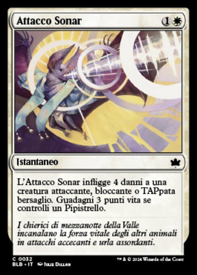 | Rules | Sonar Strike deals 4 damage to target attacking, blocking, or tapped creature. You gain 3 life if you control a Bat. |