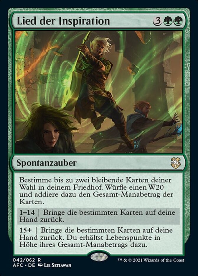 | Rules | Choose up to two target permanent cards in your graveyard. Roll a d20 and add the total mana value of those cards. 1—14 | Return those cards to your hand. 15+ | Return those cards to your hand. You gain life equal to their total mana value. |