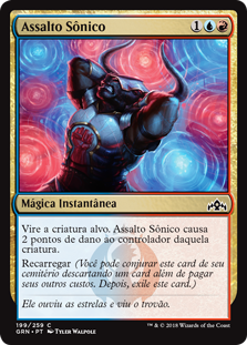 | Rules | Tap target creature. Sonic Assault deals 2 damage to that creature's controller. Jump-start (You may cast this card from your graveyard by discarding a card in addition to paying its other costs. Then exile this card.) |