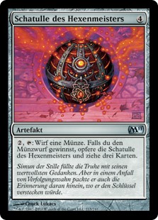 | Rules | , : Flip a coin. If you win the flip, sacrifice Sorcerer's Strongbox and draw three cards. |
