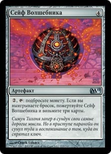 | Rules | , : Flip a coin. If you win the flip, sacrifice Sorcerer's Strongbox and draw three cards. |
