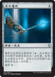 | Rules | Equipped creature has ": This creature deals 1 damage to target player or planeswalker. If this creature is a Wizard, it deals 2 damage instead." Equip |