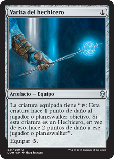 | Rules | Equipped creature has ": This creature deals 1 damage to target player or planeswalker. If this creature is a Wizard, it deals 2 damage instead." Equip |