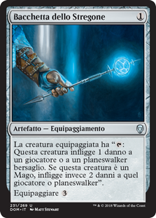 | Rules | Equipped creature has ": This creature deals 1 damage to target player or planeswalker. If this creature is a Wizard, it deals 2 damage instead." Equip |