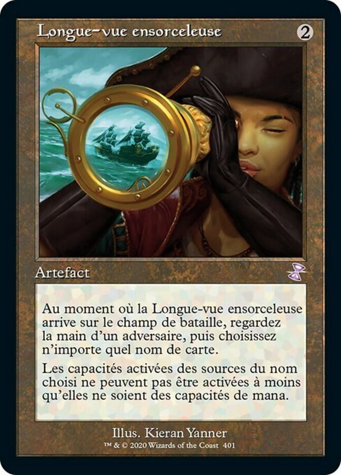 | Rules | As Sorcerous Spyglass enters the battlefield, look at an opponent's hand, then choose any card name. Activated abilities of sources with the chosen name can't be activated unless they're mana abilities. |