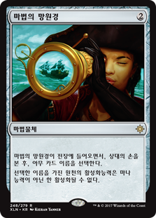| Rules | As Sorcerous Spyglass enters the battlefield, look at an opponent's hand, then choose any card name. Activated abilities of sources with the chosen name can't be activated unless they're mana abilities. |