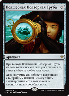 | Rules | As Sorcerous Spyglass enters the battlefield, look at an opponent's hand, then choose any card name. Activated abilities of sources with the chosen name can't be activated unless they're mana abilities. |