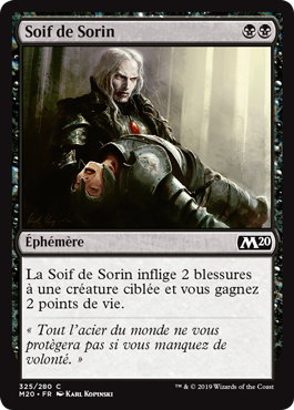 | Rules | Sorin's Thirst deals 2 damage to target creature and you gain 2 life. |