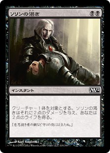 | Rules | Sorin's Thirst deals 2 damage to target creature and you gain 2 life. |