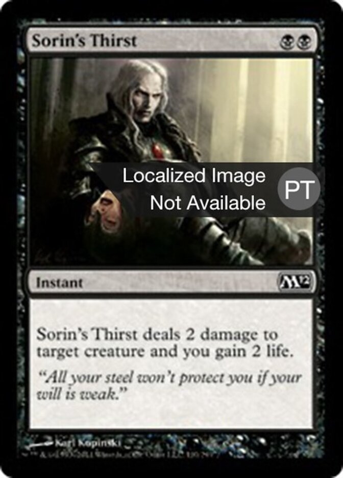 | Rules | Sorin's Thirst deals 2 damage to target creature and you gain 2 life. |