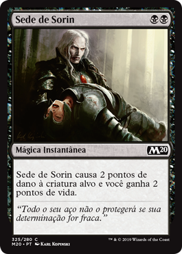 | Rules | Sorin's Thirst deals 2 damage to target creature and you gain 2 life. |