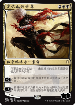 | Rules | As long as it's your turn, creatures and planeswalkers you control have lifelink. +2: Sorin, Vengeful Bloodlord deals 1 damage to target player or planeswalker. −X: Return target creature card with mana value X from your graveyard to the battlefield. That creature is a Vampire in addition to its other types. |