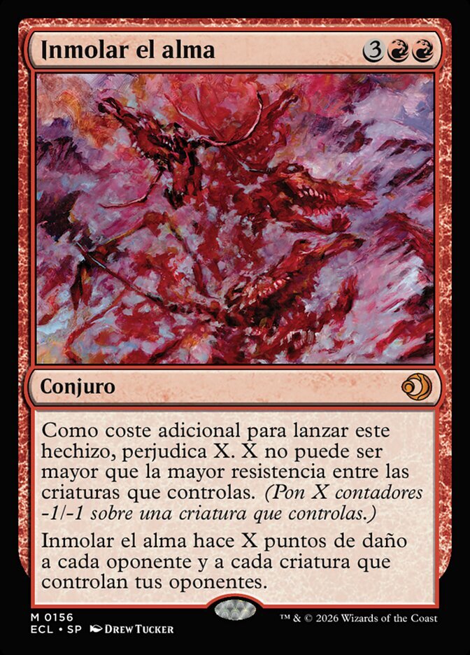 | Rules | As an additional cost to cast this spell, blight X. X can't be greater than the greatest toughness among creatures you control. (Put X -1/-1 counters on a creature you control.) Soul Immolation deals X damage to each opponent and each creature they control. |