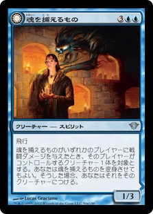 | Rules | Flying When Soul Seizer deals combat damage to a player, you may transform it. If you do, attach it to target creature that player controls. // Enchant creature You control enchanted creature. |