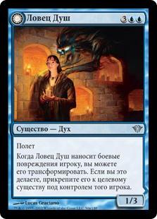 | Rules | Flying When Soul Seizer deals combat damage to a player, you may transform it. If you do, attach it to target creature that player controls. // Enchant creature You control enchanted creature. |
