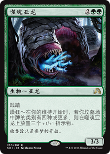 | Rules | Trample Delirium — At the beginning of your upkeep, if there are four or more card types among cards in your graveyard, put three +1/+1 counters on Soul Swallower. |
