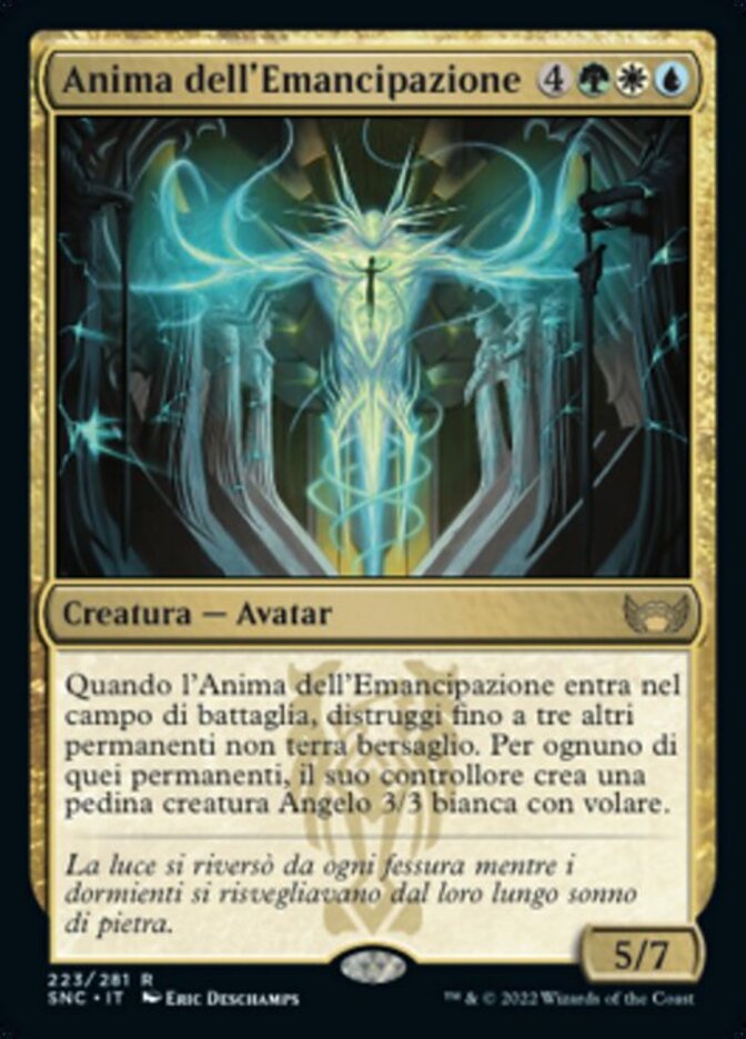 | Rules | When Soul of Emancipation enters the battlefield, destroy up to three other target nonland permanents. For each of those permanents, its controller creates a 3/3 white Angel creature token with flying. |