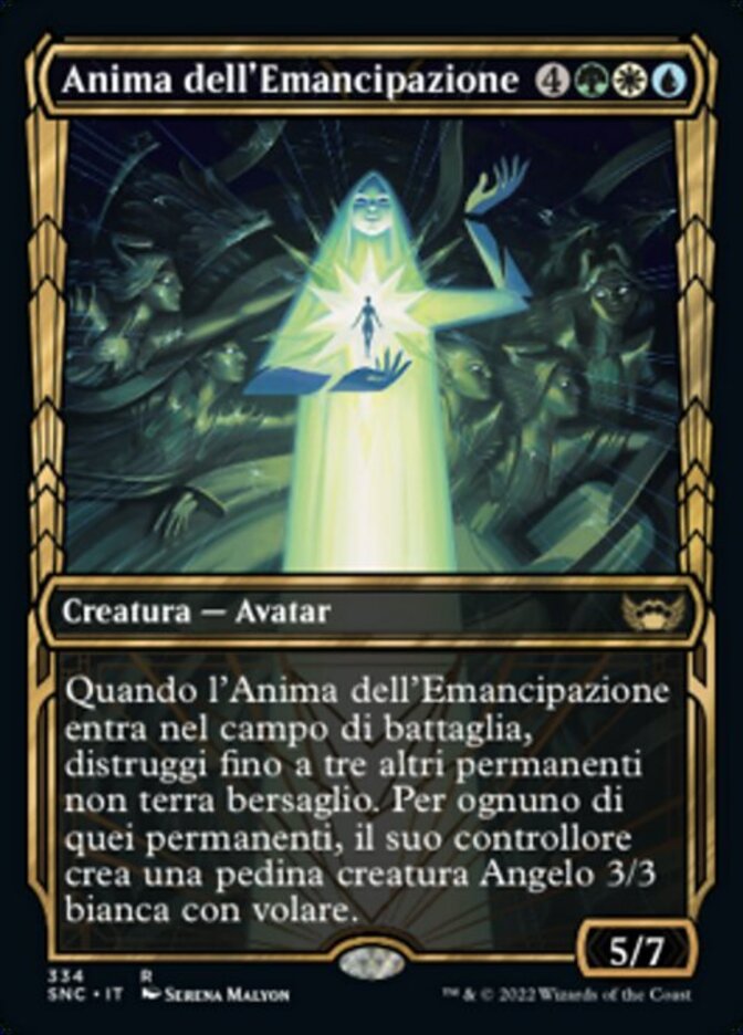 | Rules | When Soul of Emancipation enters the battlefield, destroy up to three other target nonland permanents. For each of those permanents, its controller creates a 3/3 white Angel creature token with flying. |