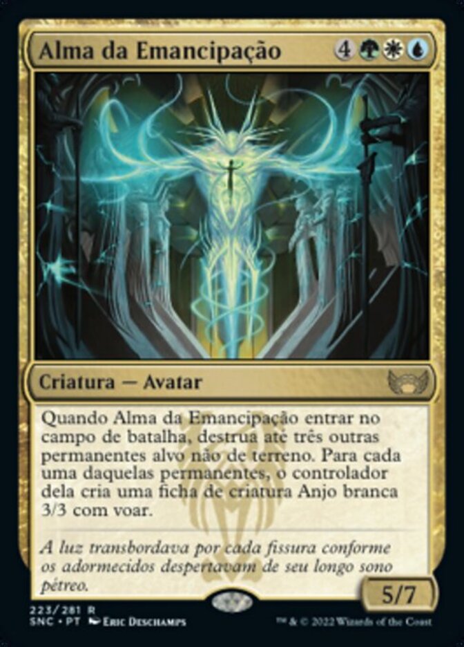 | Rules | When Soul of Emancipation enters the battlefield, destroy up to three other target nonland permanents. For each of those permanents, its controller creates a 3/3 white Angel creature token with flying. |