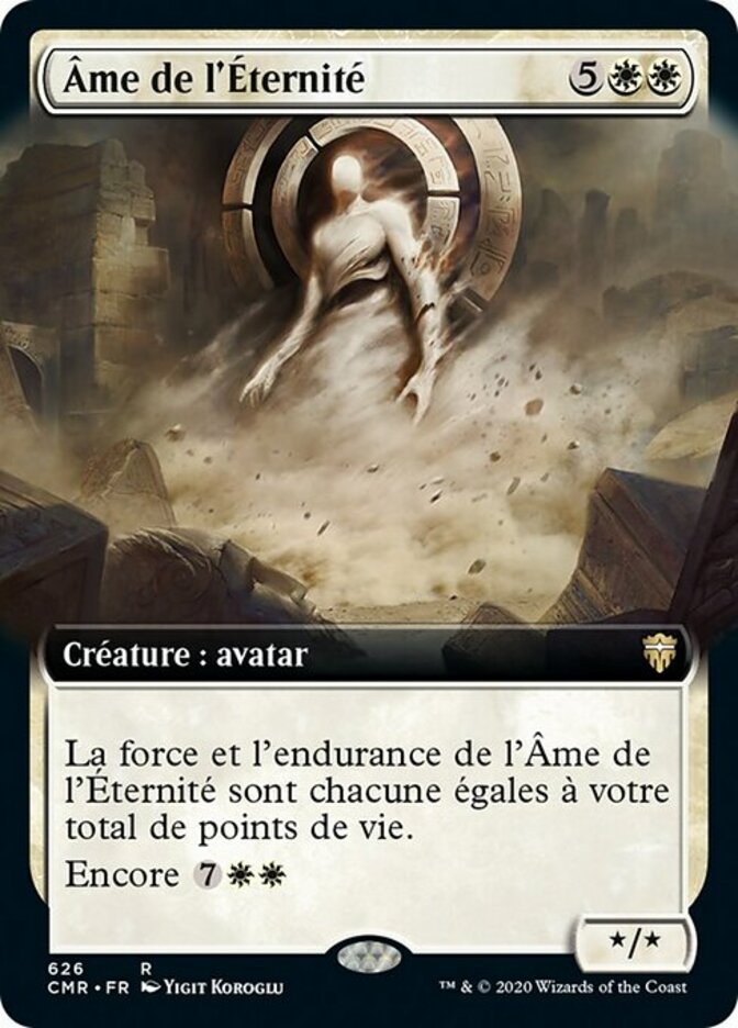 | Rules | Soul of Eternity's power and toughness are each equal to your life total. Encore (, Exile this card from your graveyard: For each opponent, create a token copy that attacks that opponent this turn if able. They gain haste. Sacrifice them at the beginning of the next end step. Activate only as a sorcery.) |