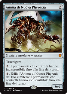 | Rules | Trample : Permanents you control gain indestructible until end of turn. , Exile Soul of New Phyrexia from your graveyard: Permanents you control gain indestructible until end of turn. |