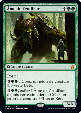 | Rules | Reach : Create a 3/3 green Beast creature token. , Exile Soul of Zendikar from your graveyard: Create a 3/3 green Beast creature token. |
