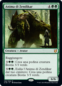 | Rules | Reach : Create a 3/3 green Beast creature token. , Exile Soul of Zendikar from your graveyard: Create a 3/3 green Beast creature token. |