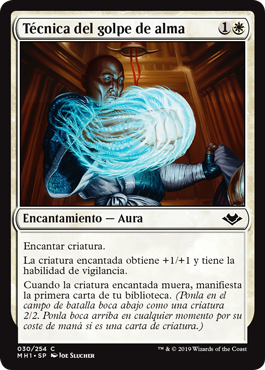 | Rules | Enchant creature Enchanted creature gets +1/+1 and has vigilance. When enchanted creature dies, manifest the top card of your library. (Put it onto the battlefield face down as a 2/2 creature. Turn it face up any time for its mana cost if it's a creature card.) |