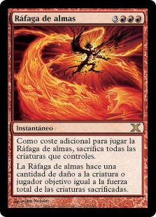 | Rules | As an additional cost to cast this spell, sacrifice all creatures you control. Soulblast deals damage to any target equal to the total power of the sacrificed creatures. |