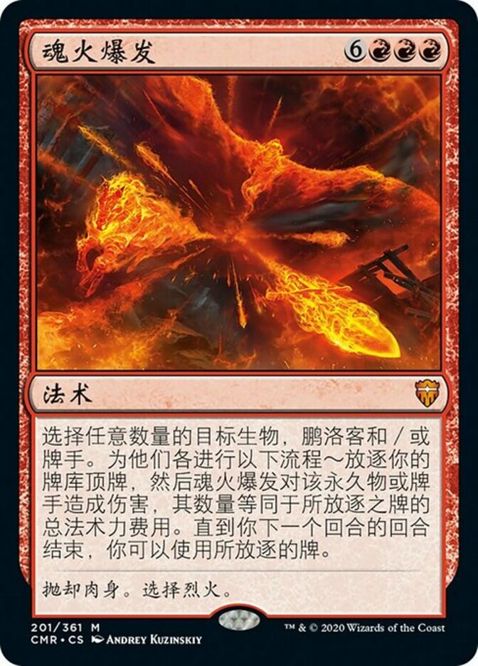 | Rules | Choose any number of target creatures, planeswalkers, and/or players. For each of them, exile the top card of your library, then Soulfire Eruption deals damage equal to that card's mana value to that permanent or player. You may play the exiled cards until the end of your next turn. |