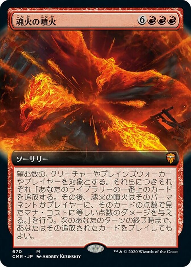 Rules Choose any number of target creatures, planeswalkers, and/or players. For each of them, exile the top card of your library, then Soulfire Eruption deals damage equal to that card's mana value to that permanent or player. You may play the exiled cards until the end of your next turn.