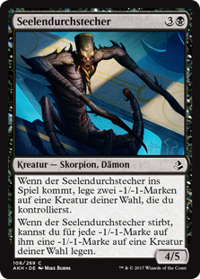 | Rules | When Soulstinger enters the battlefield, put two -1/-1 counters on target creature you control. When Soulstinger dies, you may put a -1/-1 counter on target creature for each -1/-1 counter on Soulstinger. |