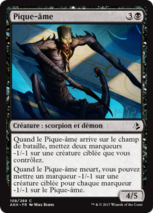 | Rules | When Soulstinger enters the battlefield, put two -1/-1 counters on target creature you control. When Soulstinger dies, you may put a -1/-1 counter on target creature for each -1/-1 counter on Soulstinger. |