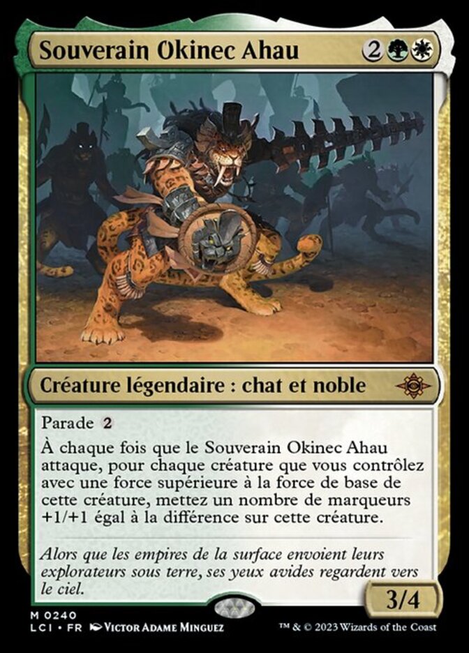 | Rules | Ward Whenever Sovereign Okinec Ahau attacks, for each creature you control with power greater than that creature's base power, put a number of +1/+1 counters on that creature equal to the difference. |