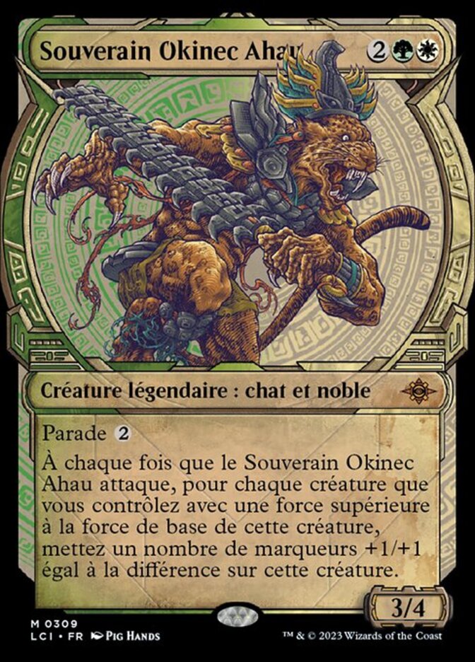 | Rules | Ward Whenever Sovereign Okinec Ahau attacks, for each creature you control with power greater than that creature's base power, put a number of +1/+1 counters on that creature equal to the difference. |