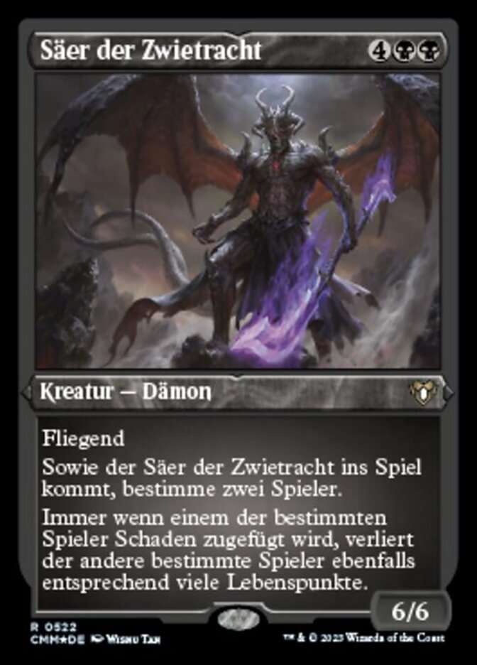 | Rules | Flying As Sower of Discord enters the battlefield, choose two players. Whenever damage is dealt to one of the chosen players, the other chosen player also loses that much life. |